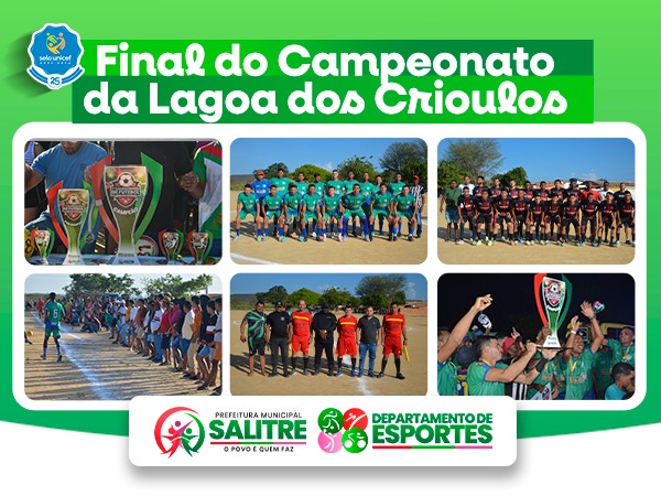 A administração "O Povo é Quem Faz", promoveu, através do Departamento de Esportes, o 1° Campeonato do Distrito Lagoa dos Crioulos, onde a grande final aconteceu no último domingo, 01 de fevereiro. O evento esportivo reuniu a comunidade e demonstrou o compromisso da gestão com o incentivo ao esporte e à integração social. O torneio contou com uma expressiva participação de 28 equipes provenientes do próprio município, evidenciando a grande adesão popular e o saudável espírito competitivo local.